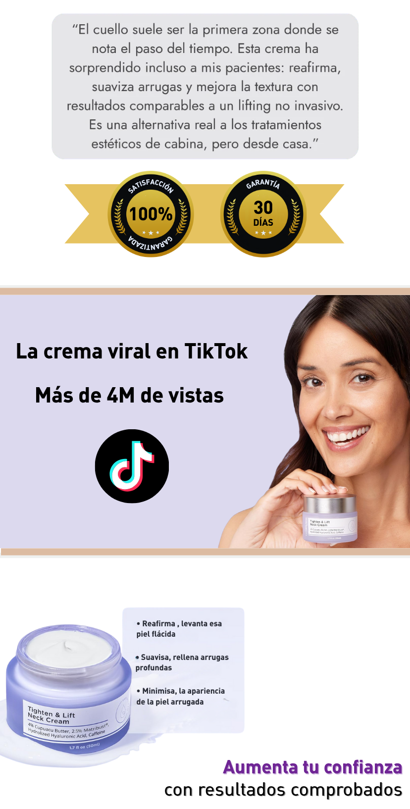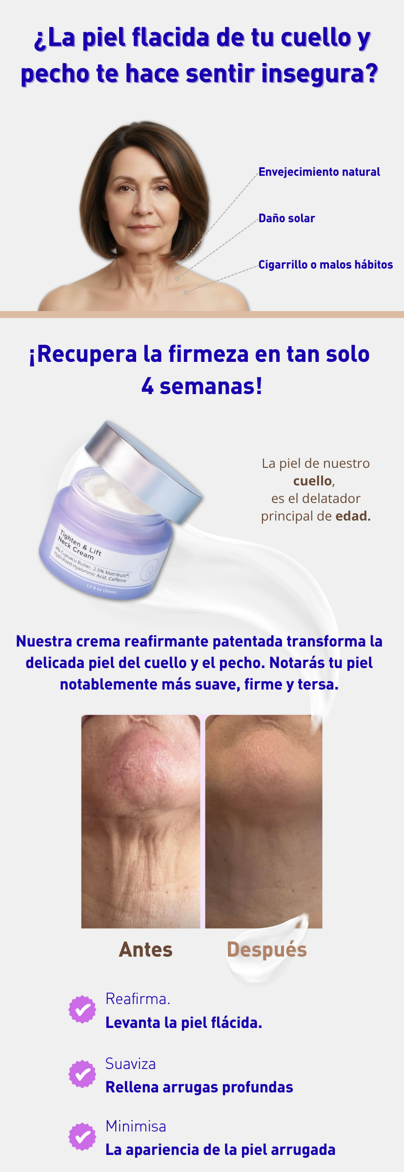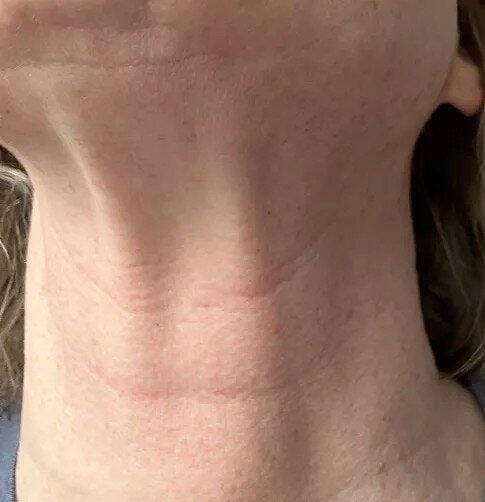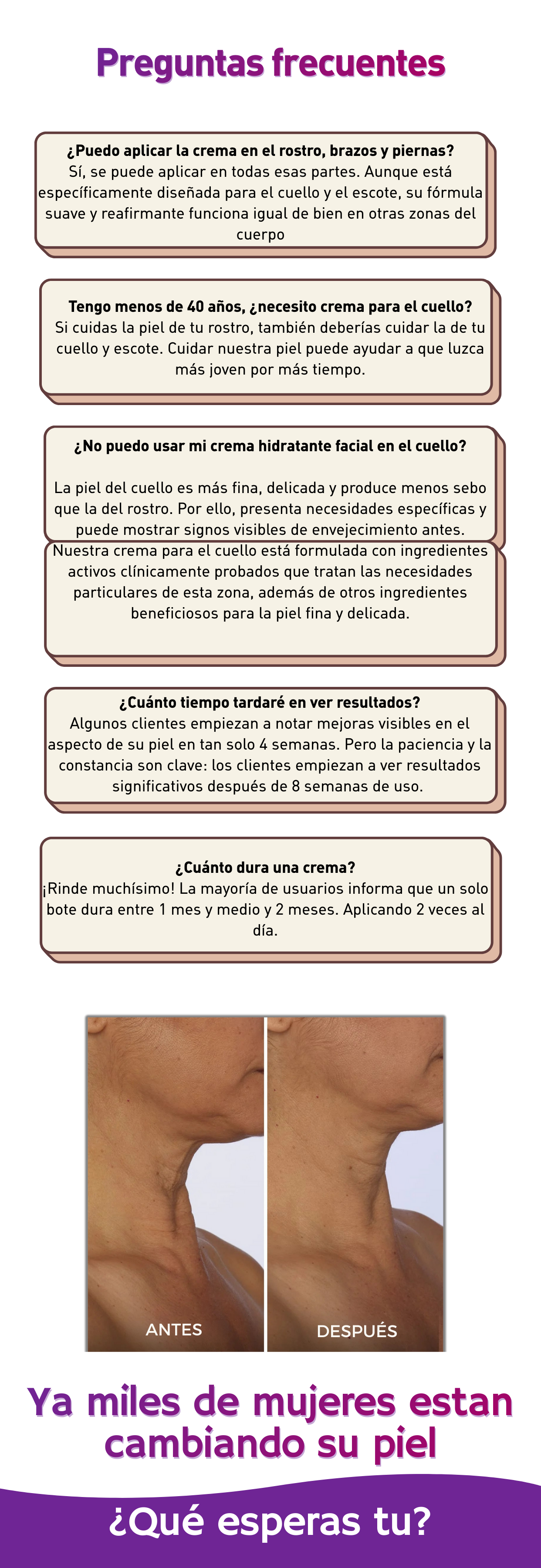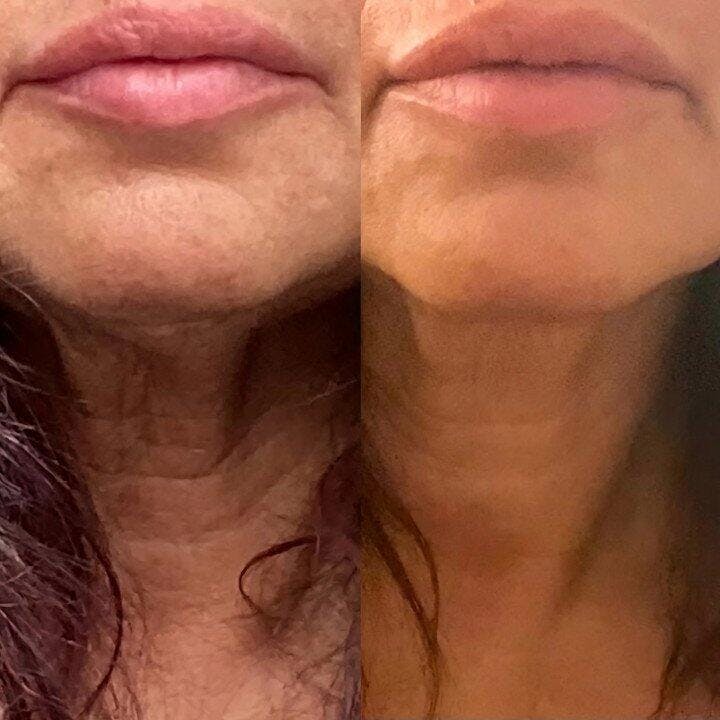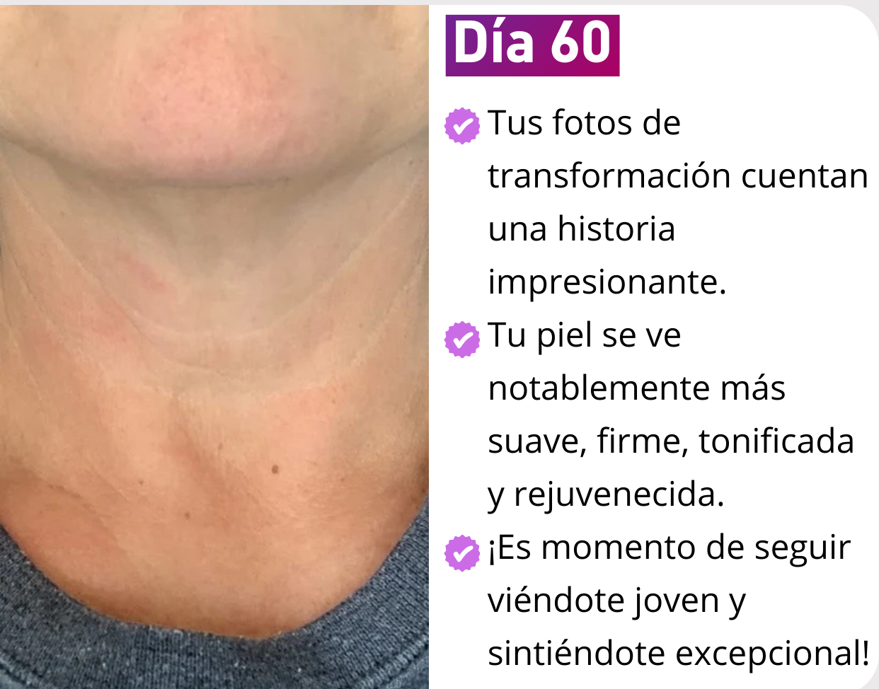 Tengo la piel del cuello arrugada y me encanta este producto. ¡También noto una gran diferencia en mis mejillas arrugadas!