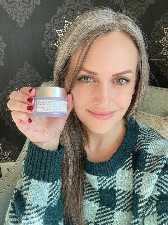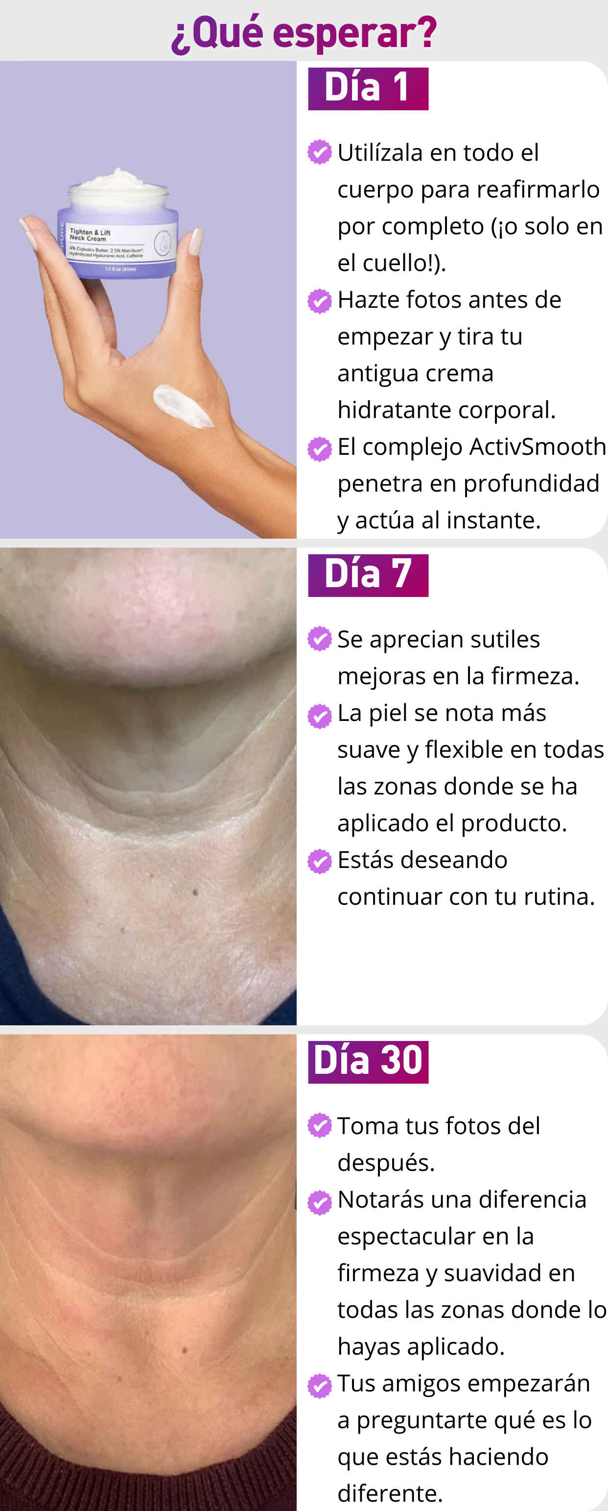 Llevo más de dos meses usando esta crema para el cuello. ¡Mi cuello sigue estando fantástico, incluso después de haber perdido casi 23 kilos el año pasado!